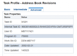 On the Task Profile, click on the Advanced tab to get the Task ID value assigned to this application: 3/G01