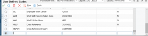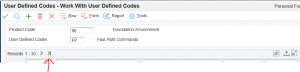 On the Work with User Defined Codes application type the product code “zero-zero” and UDC type “FP”, scroll to the end of the list.