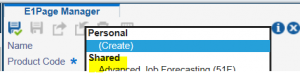 To view existing E1 pages, click the dropdown under the E1Page Manager to display all shared E1 Pages: