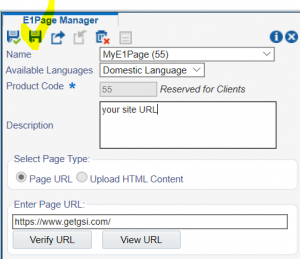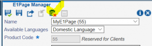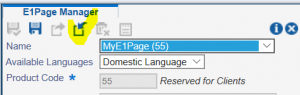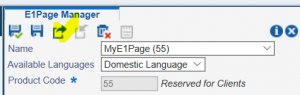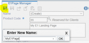 Click this E1Page Manager button and enter the new name to create the E1 Page: