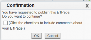 Next to the Save As button in E1Page Manager is the “Request to Publish” button. Click this once the page is ready to share (to individual, select roles, or everybody - *PUBLIC):