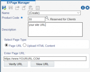 When selecting the Page URL radio button to build the E1 Landing page, verifying the site is key. The “Verify URL” button will validate and confirm the page in the Enter Page URL field:
