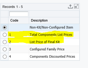 Stocking Type should be “K”. Also need to determine Kit Pricing Method. Values are below: