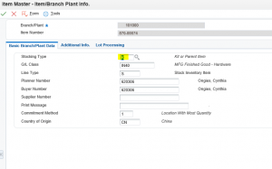 If you want to set up Kit Processing in JDE E1, the screen shots in this document will outline the mandatory set up in Item Master, Item Branch and PO receipts program for purchasing Kits where the Kit Components are Serialized items.