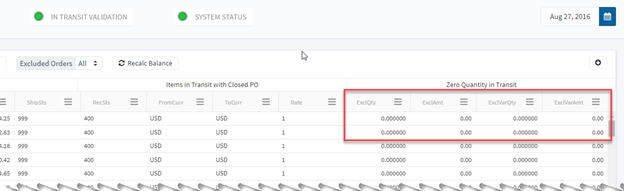 The last 2 variance columns are important as they will identify any item activity on orders that have been previously excluded. If there are non-zero amounts on any row, those lines must be ‘Unexcluded’ and ‘Excluded’ again so the quantities and amounts are recalculated correctly. This will ensure an accurate In Transit reconciliation. In theory, if In Transit orders are processed correctly this should never happen. But things don’t always happen as they should. Happy reconciling!