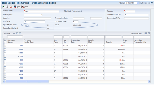You would need to set the filters on the item ledger screen according to the cost level for the average cost item. The picture above would apply to level 1, where only the item number is specified. If the item is level 2, a specific branch must be entered and for level 3 a location/lot. Cardex integrity is an important factor in maintaining the health of you inventory system. It is important to know how to validate the data, especially when using weighted averages!