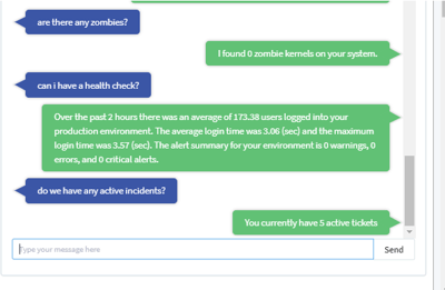 We are still working out the details on useful responses. Our goal, by general release time, is to provide detailed information with only a few simple questions. For example, if you have zombie kernels the response would tell you how many and what systems they reside on. Open tickets in ServiceNow will include links to these tickets. These are just a few of the scenarios that are possible. We hope that with the help of our GENIUS clients we can start to add much, much more!