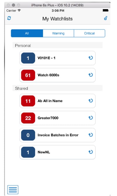 Each of your employees can easily identify All, Warning and Critical Watchlists tabs from their mobile device, whether a phone or tablet, when data has exceeded acceptable thresholds. Benefits are: