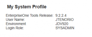 “My System Profile” - will show you the user ID, environment, role and tools release information. It is an information only screen that will look like this: