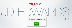 “Record a Process” – this feature delivered in tools 9.2.2.4, is used in conjunction with the E1 Orchestrator can record steps to create a service request and automate a process of entering transaction data that will be integrated with an Orchestrator process flow to accurately record the results from another application and sends notifications out to alert of good or not so good results. It’s as simple as launching the process recorder (the green start button below) and filling up controls form. We will have more on this as we explore the JDE E1 Orchestrator in future articles.