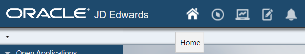 When we log into the JD Edwards EnterpriseOne application, we will see the EnterpriseOne home page. If we are deep inside the application, we can always click on the "house" icon to get us back to the starting point.