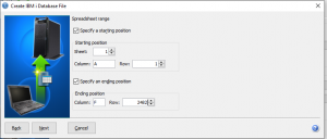 Click on Specify a starting position (if different than sheet 1 then change it to whatever sheet it is), then type in your starting Column and Row. Next, click on Specify an ending position and type in your end Column and end Row. Then click next