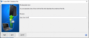 Click Finish. You have now created the actual data file without data on the iSeries.