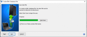 Next, click on First row of data contains filed names. This will let iAccess know that the top row is the column headings. Click Start Scan